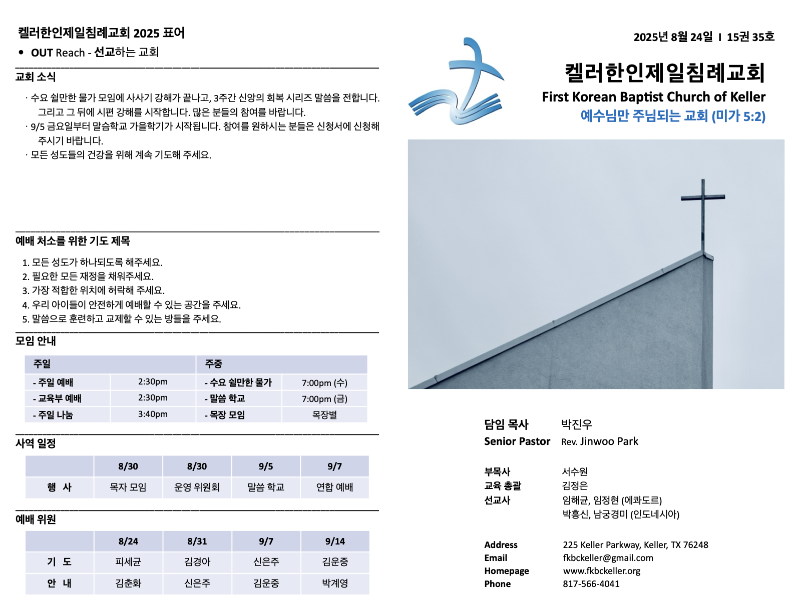 주보 · 총 103개의 게시글이 있습니다. 91 FKBCK | Sep 21, 2025 주보/설교노트 - 09/21/2025 자세히 보기 90 FKBCK | Sep 14, 2025 주보/설교노트 - 09/14/2025 자세히 보기 89 FKBCK | Sep 07, 2025 주보/설교노트 - 09/07/2025 자세히 보기 88 FKBCK | Aug 31, 2025 주보/설교노트 - 08/31/2025 자세히 보기 87 FKBCK | Aug 24, 2025 주보/설교노트 - 08/24/2025 자세히 보기 86 FKBCK | Aug 17, 2025 주보/설교노트 - 08/17/2025 자세히 보기 처음 1페이지 2페이지 열린3페이지 4페이지 5페이지 6페이지 7페이지 8페이지 9페이지 10페이지 다음 맨끝 검색 검색대상 제목내용제목+내용글쓴이글쓴이(코) 검색어 필수 검색 닫기